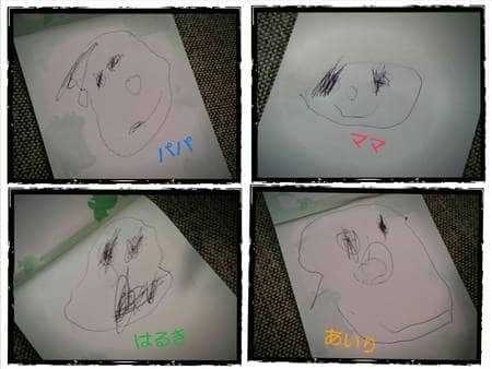 息子が!家族の似顔絵を描きました(笑)