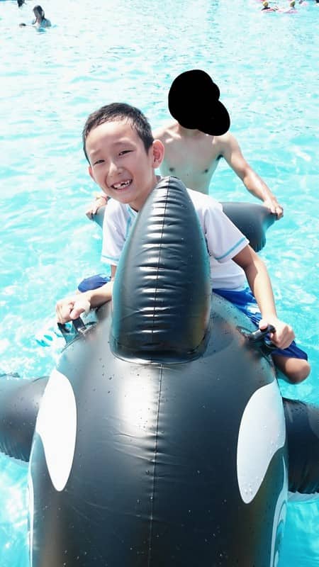 シャチのうきわを以前から欲しがっていて、この日のために購入しました。
