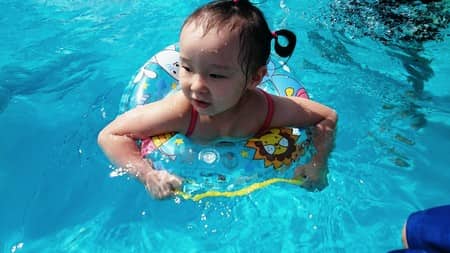 娘も「ちょっと休憩ね」と言ってプールからあがろうとすると、嫌がってあがろうとせず・・・