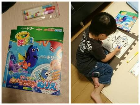 最近息子がハマってる 塗り絵&ピクサー映画キャラクター(笑) 息子には最強タッグアイテム(笑)(^^;