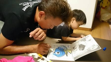 家に帰ると早速塗り絵タイムです( v^-゜)♪
