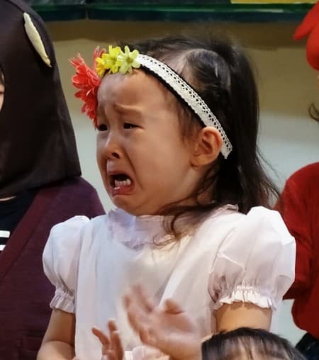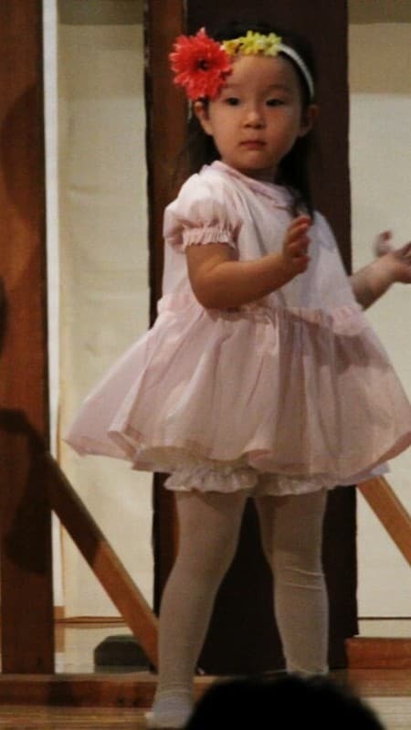 ドレスを着て、歌いながら踊り、顔は緊張していましたが、泣かずに頑張っていました(´∀`)