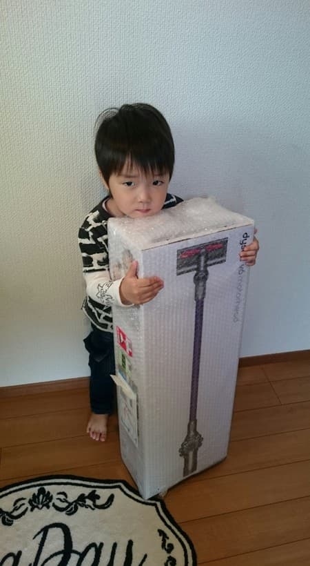 とりあえず玄関で記念で届いた ダイソンを記念撮影してると…