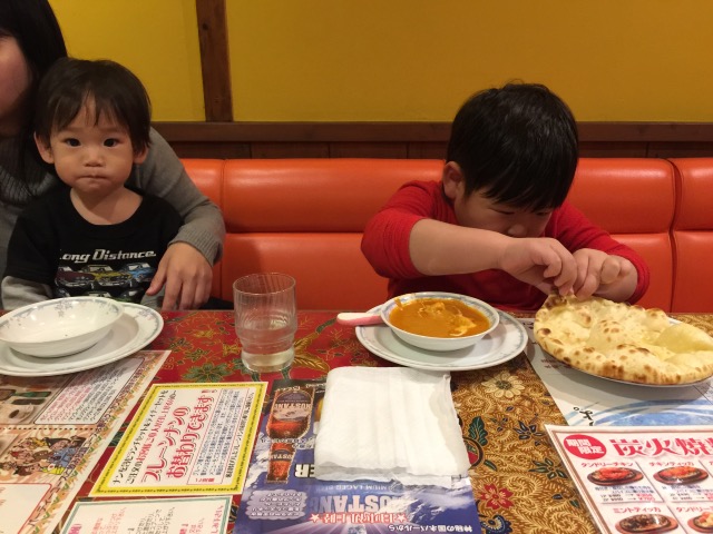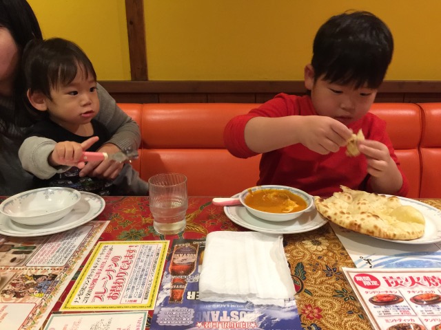 次々運ばれる美味しそうなカレーに三男氏大興奮(๑•̆૩•̆)