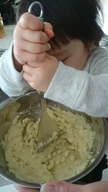 コロッケを作るから、おいもを潰すのを手伝ってもらうことにしました!!!