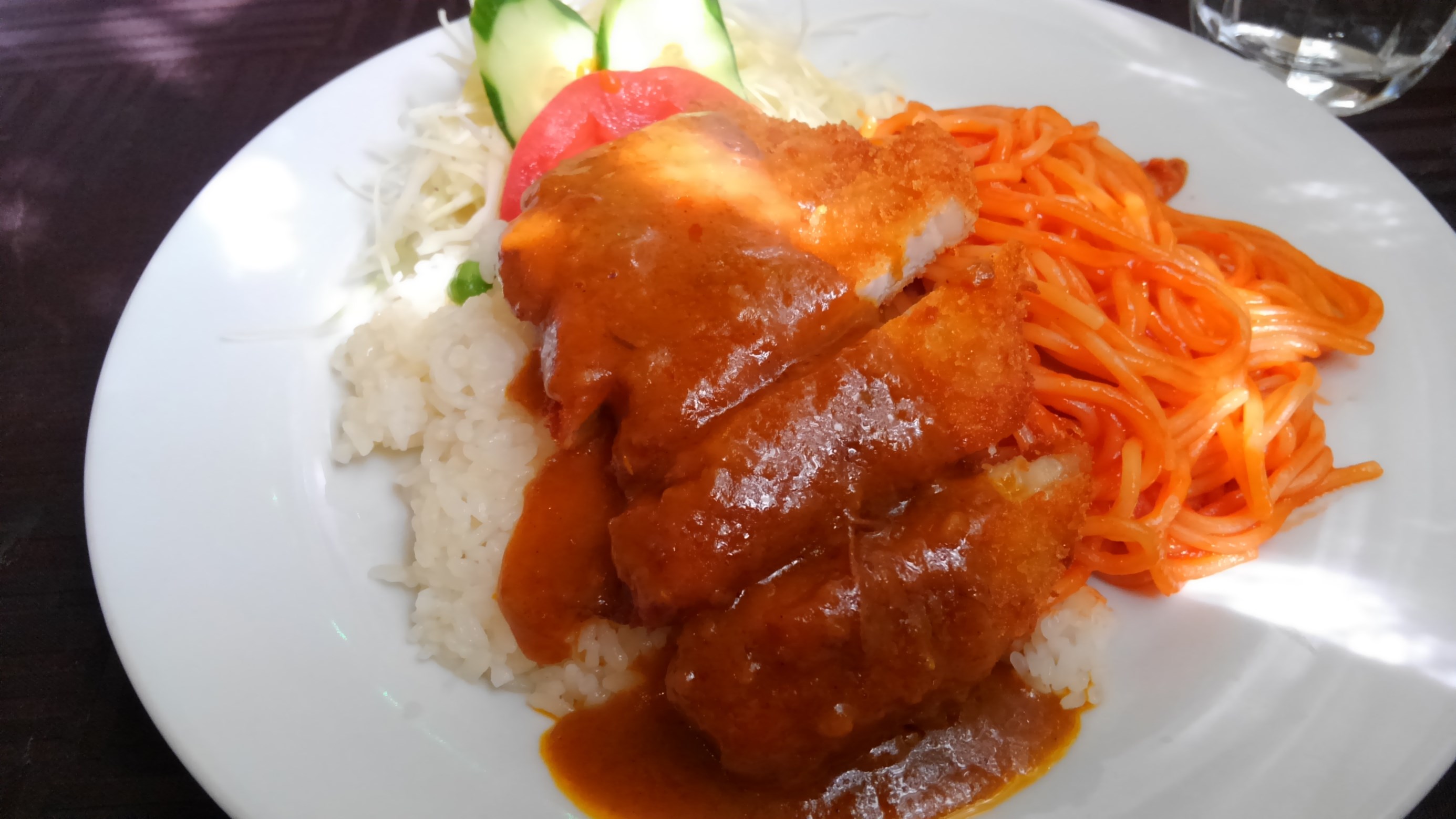 トルコライスです、散々中華で腹いっぱいだったのになぜか注文しちゃいました(๑≧౪≦)