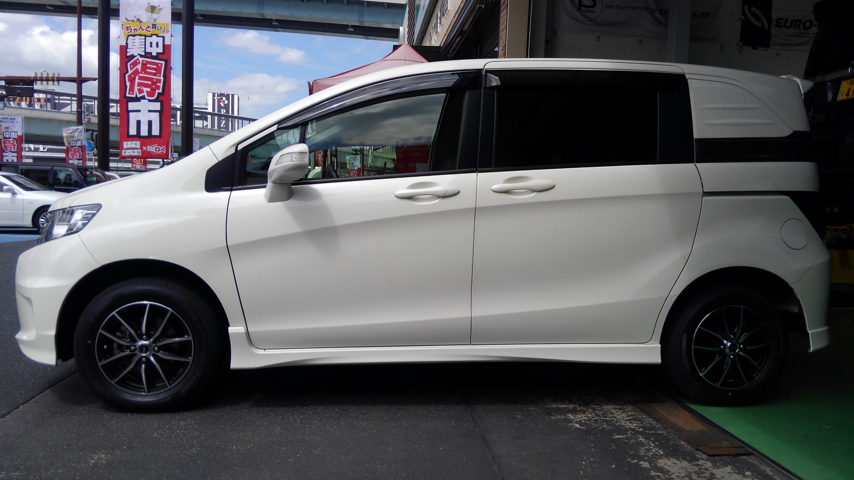 ホンダさんのフリードスパイクにタイヤホイールとアライメント調整をしました。