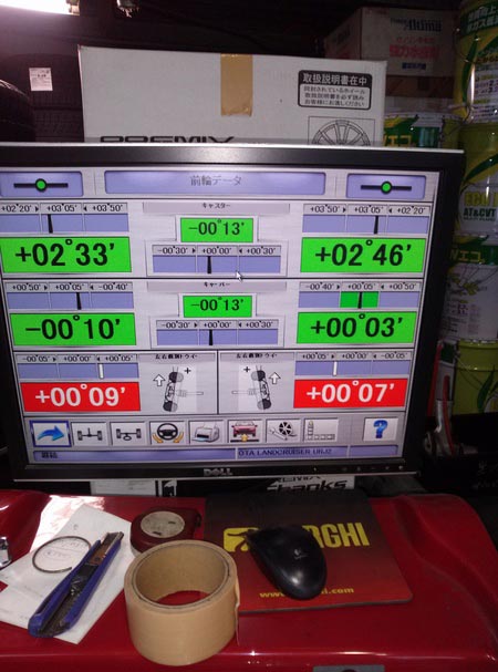 オーナー様はハンドルのとられや、ハンドル操舵時のふらつきがご不満。。。