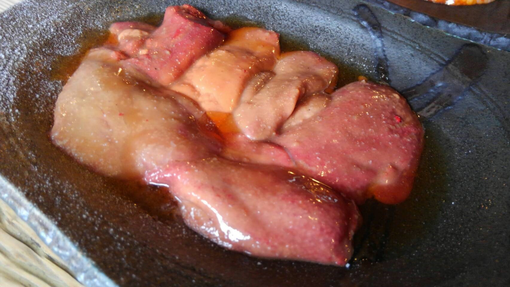 ほとんどレアで食べるレバー!このレバーがたまりませんっ!