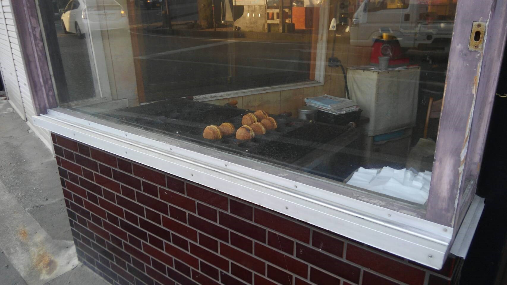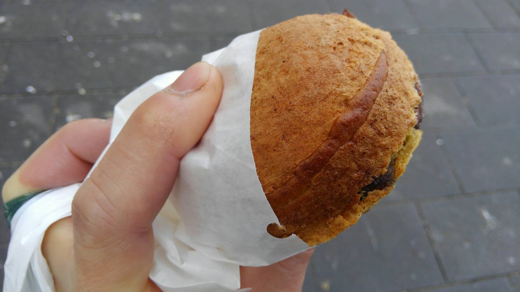 外の皮がごりっとした回転焼きみたいな饅頭でした