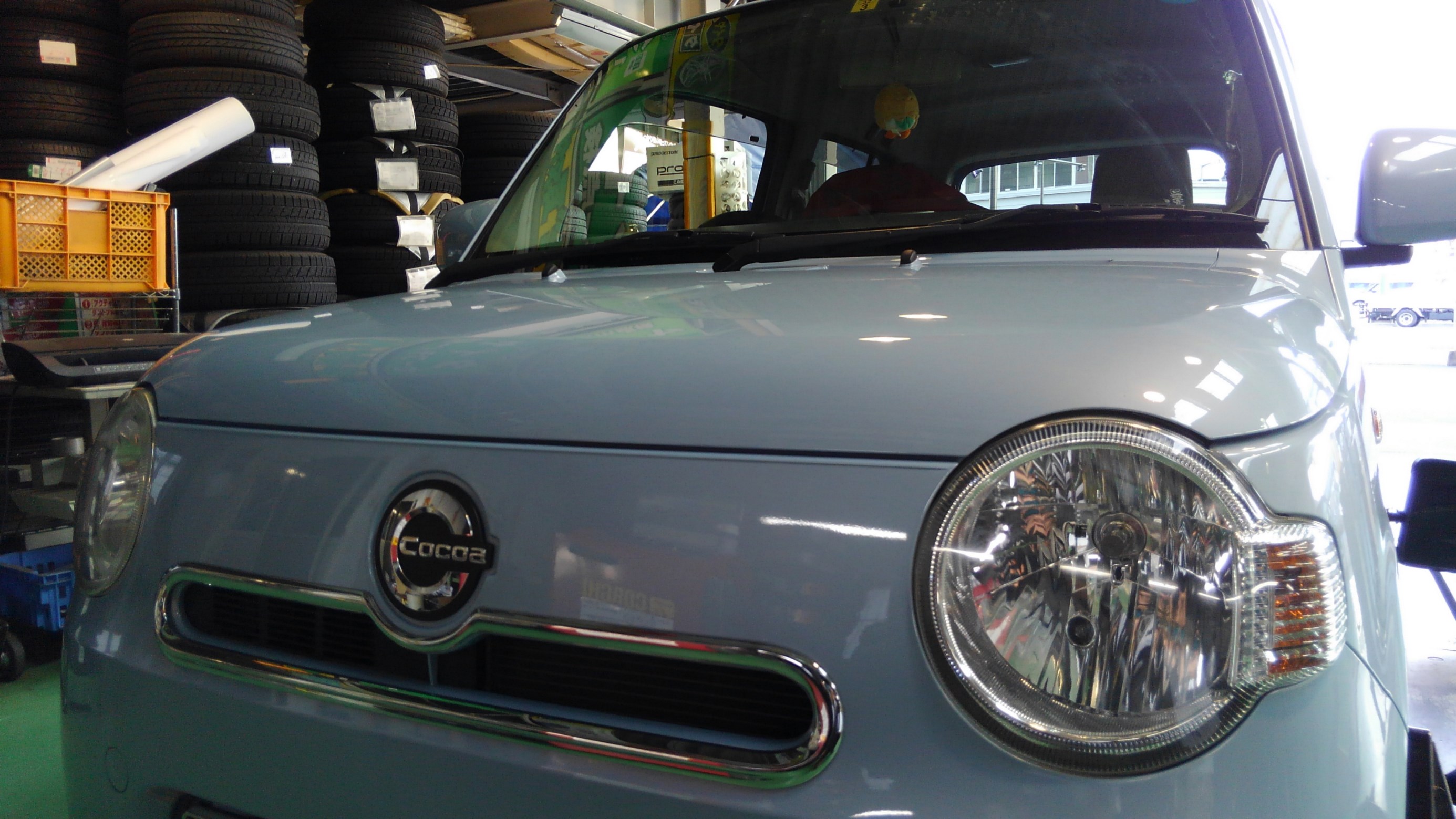 ミラココアのタイヤ交換です。
