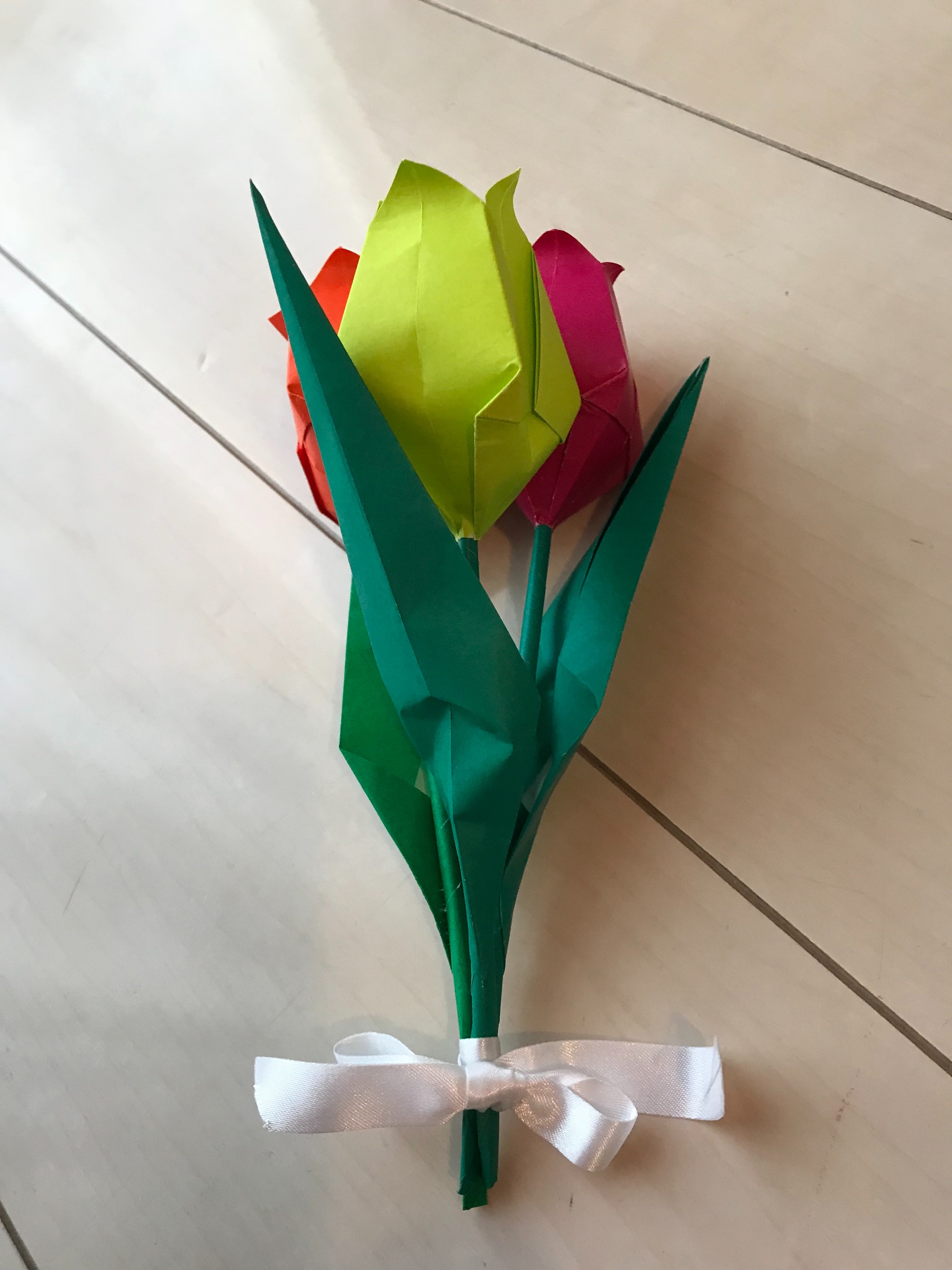 そして、家でも折り紙でチューリップを折って、先生にプレゼントしました♡喜んでくれた、先生を見て、すごく嬉しそうでした(๑˃̵ᴗ˂̵)