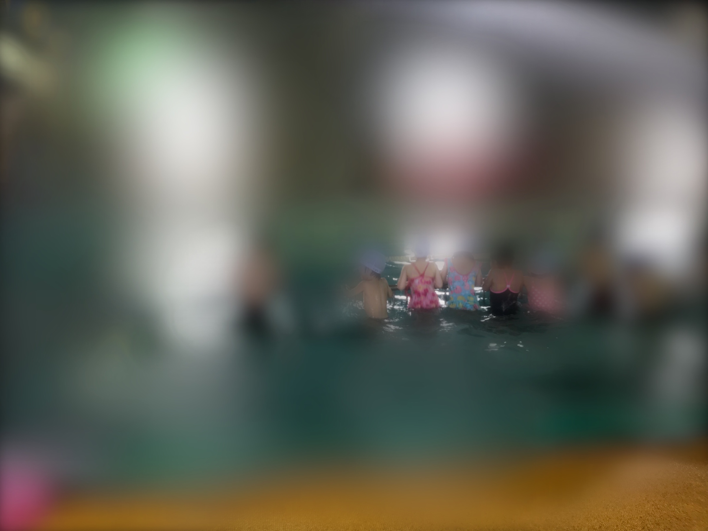 ちょうど、私もお休みだったので見学に行ってみると、まずは、水慣れからで、バシャバシャとかけたりクルクルと電車ごっこしたり、洗面器で頭からかけたり...