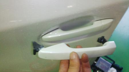 こうやって、“アンテナ内蔵のドアノブ”とチョイチョイと配線結線での純正部品追加で、助手席もスマート化できますよー!!