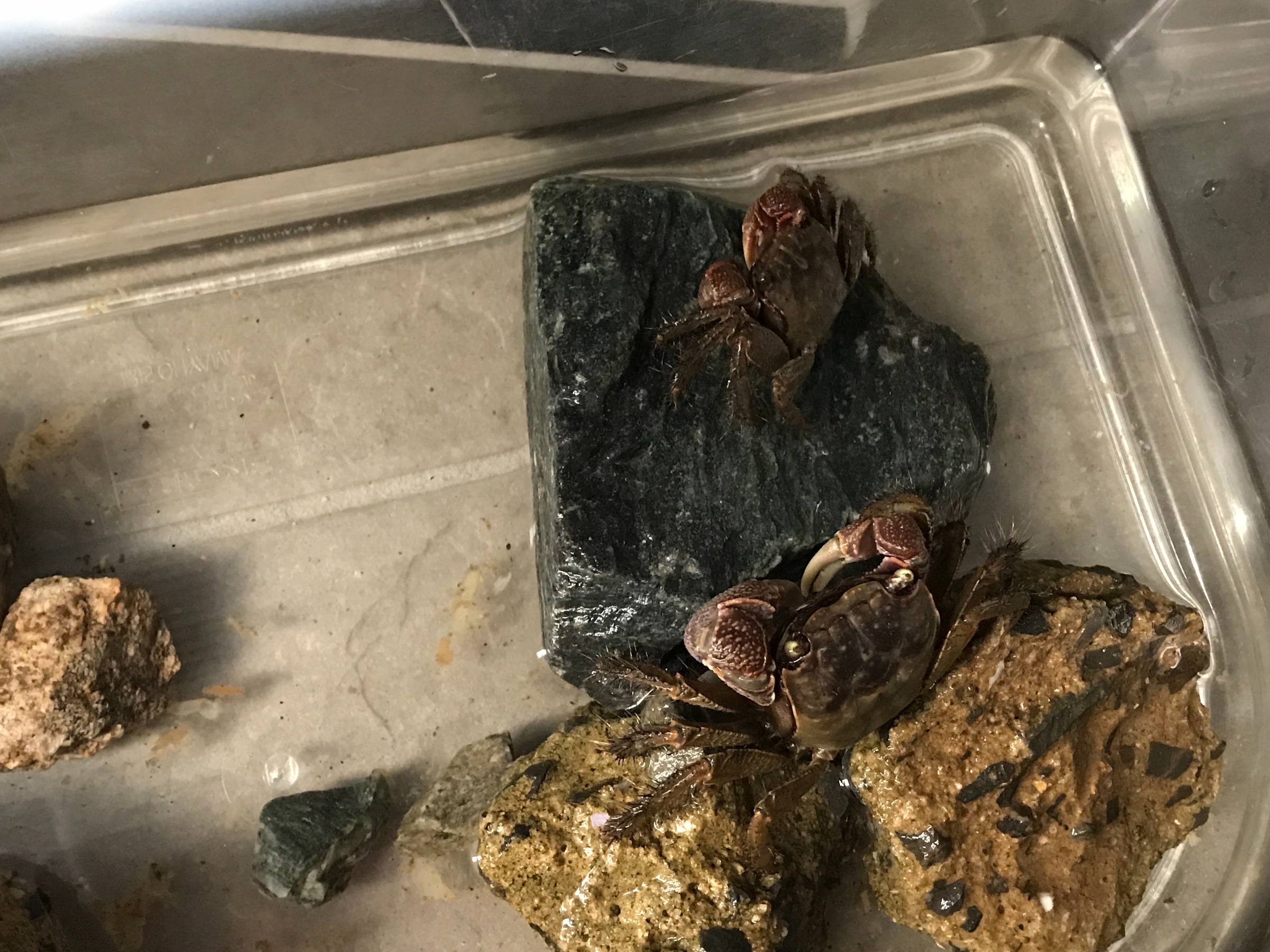 ちゃんとお世話もしないので、大きいカニも逃してあげました...もう、誰にも捕まりませんように...