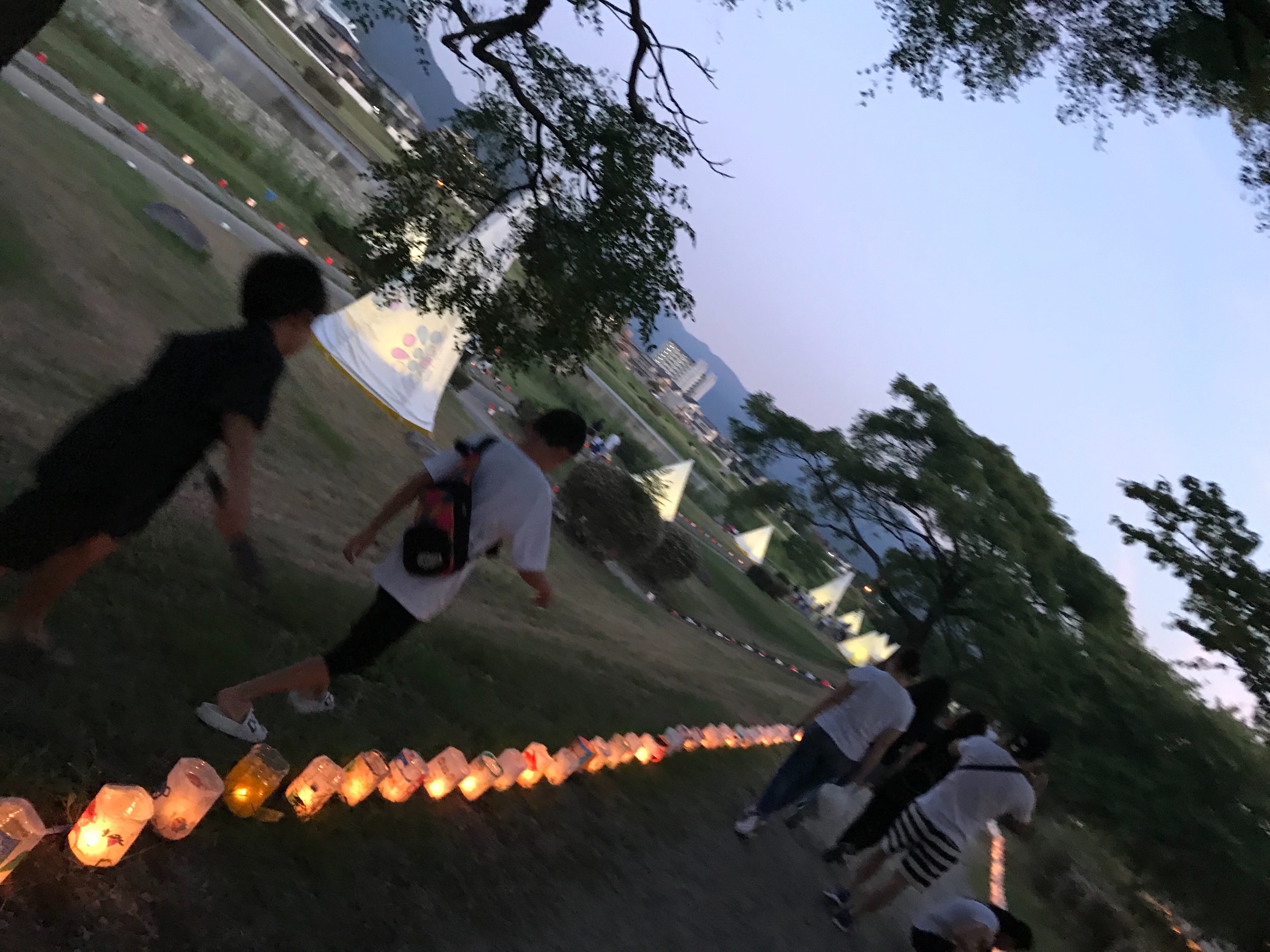 室見川の川沿いには、灯明が並べられたり、光のテントなどのキャンドルの灯りに癒されながら、幻想的な空間