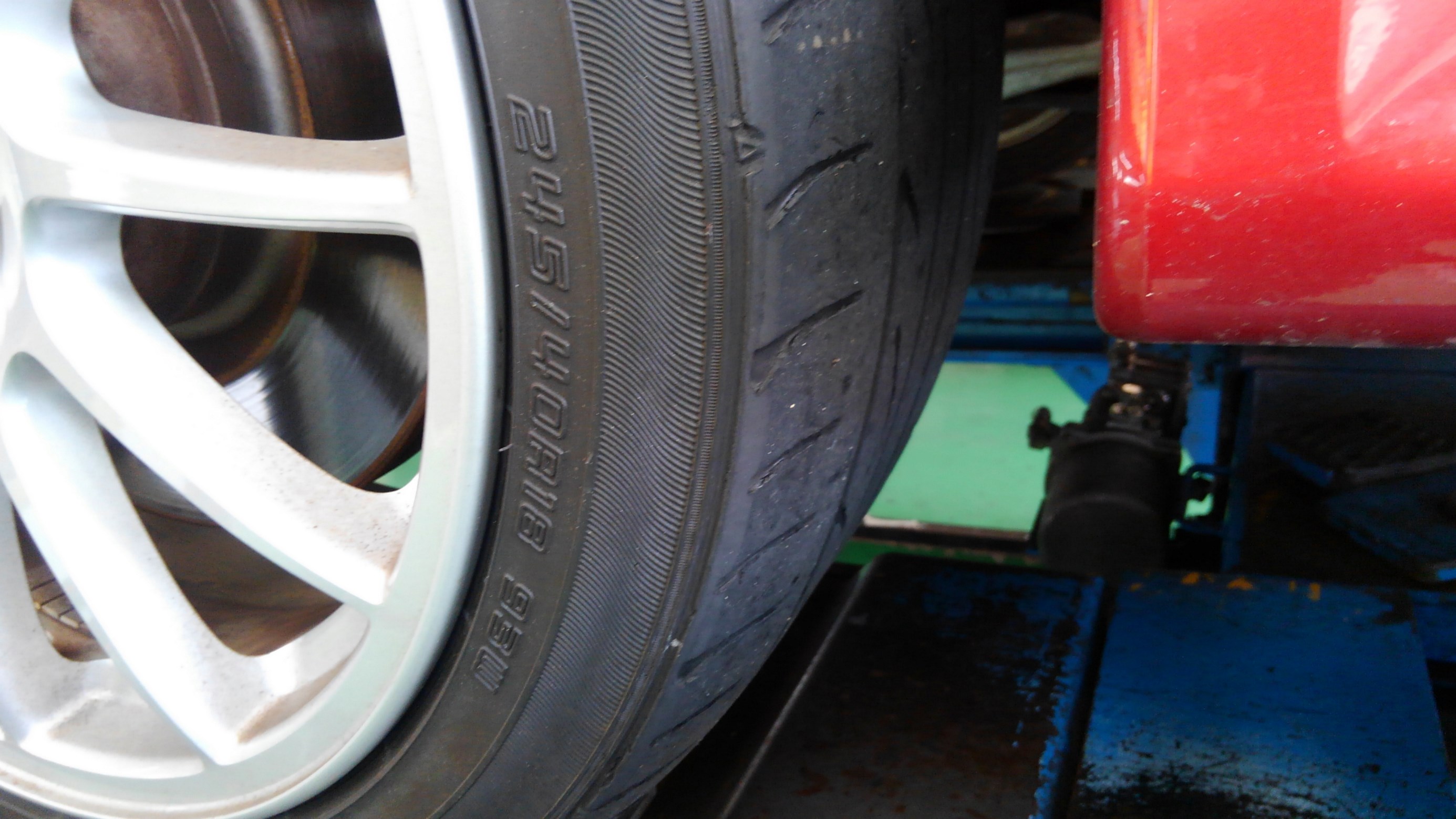 ランサーエボリューションのタイヤ交換とアライメント調整です