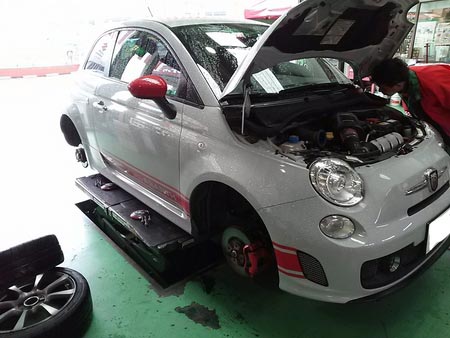 今日は、アバルト500に世界的に有名なサスペンションメーカーのアラゴスタの車高調を取り付けました♪(^^)v