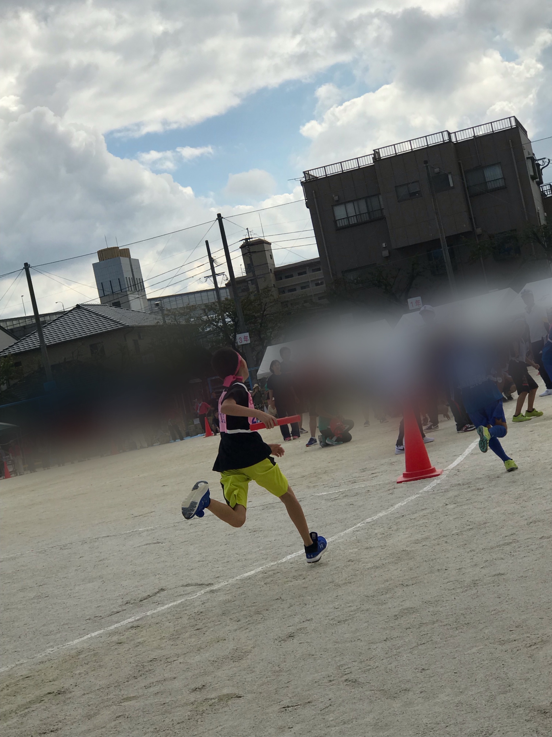 1年生から6年生までのリレーで息子は4年生なので、3年生から3番でバトンを受け取りました!