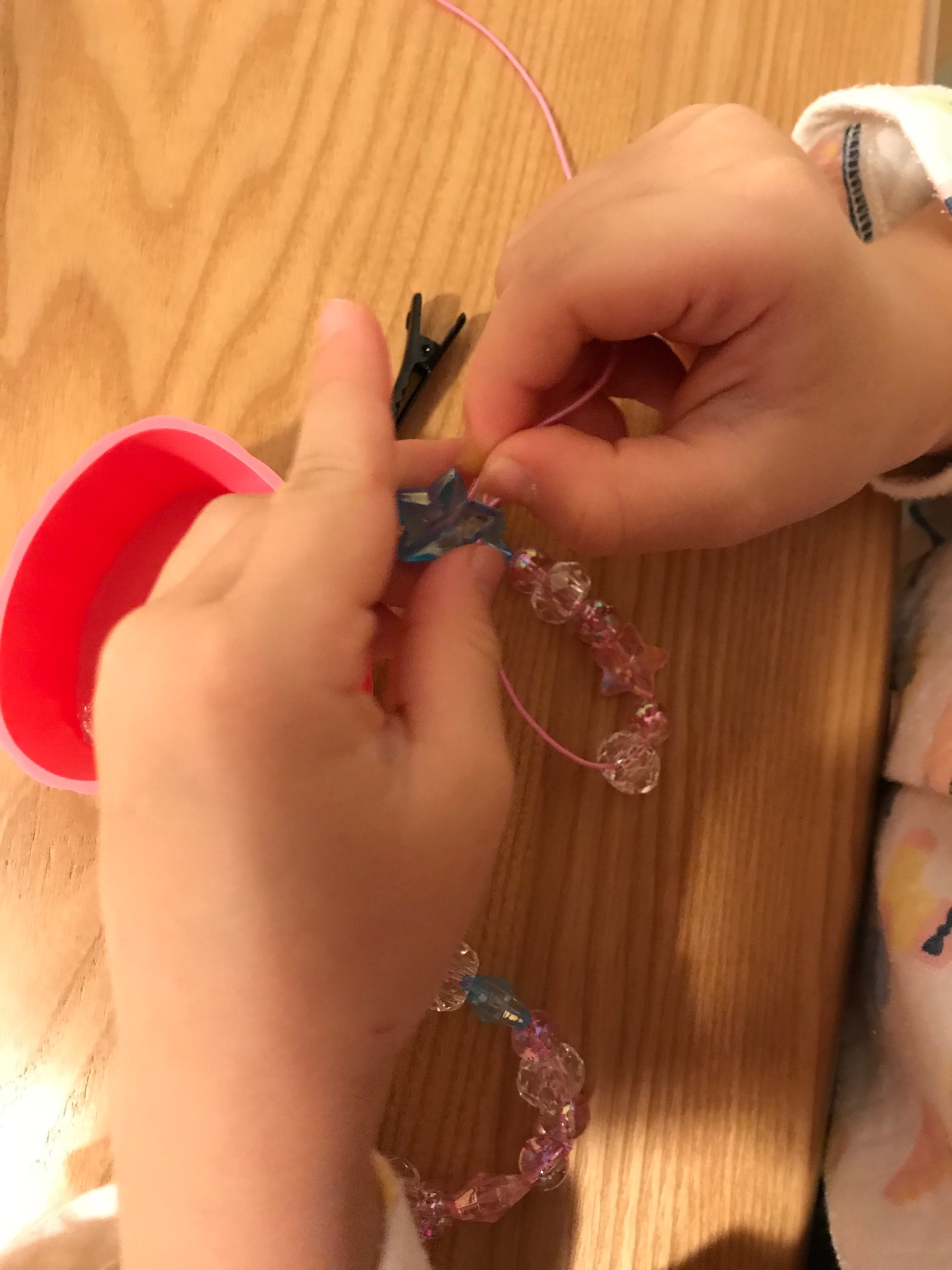 娘がお友達にあげるために、ブレスレット作りをしました!