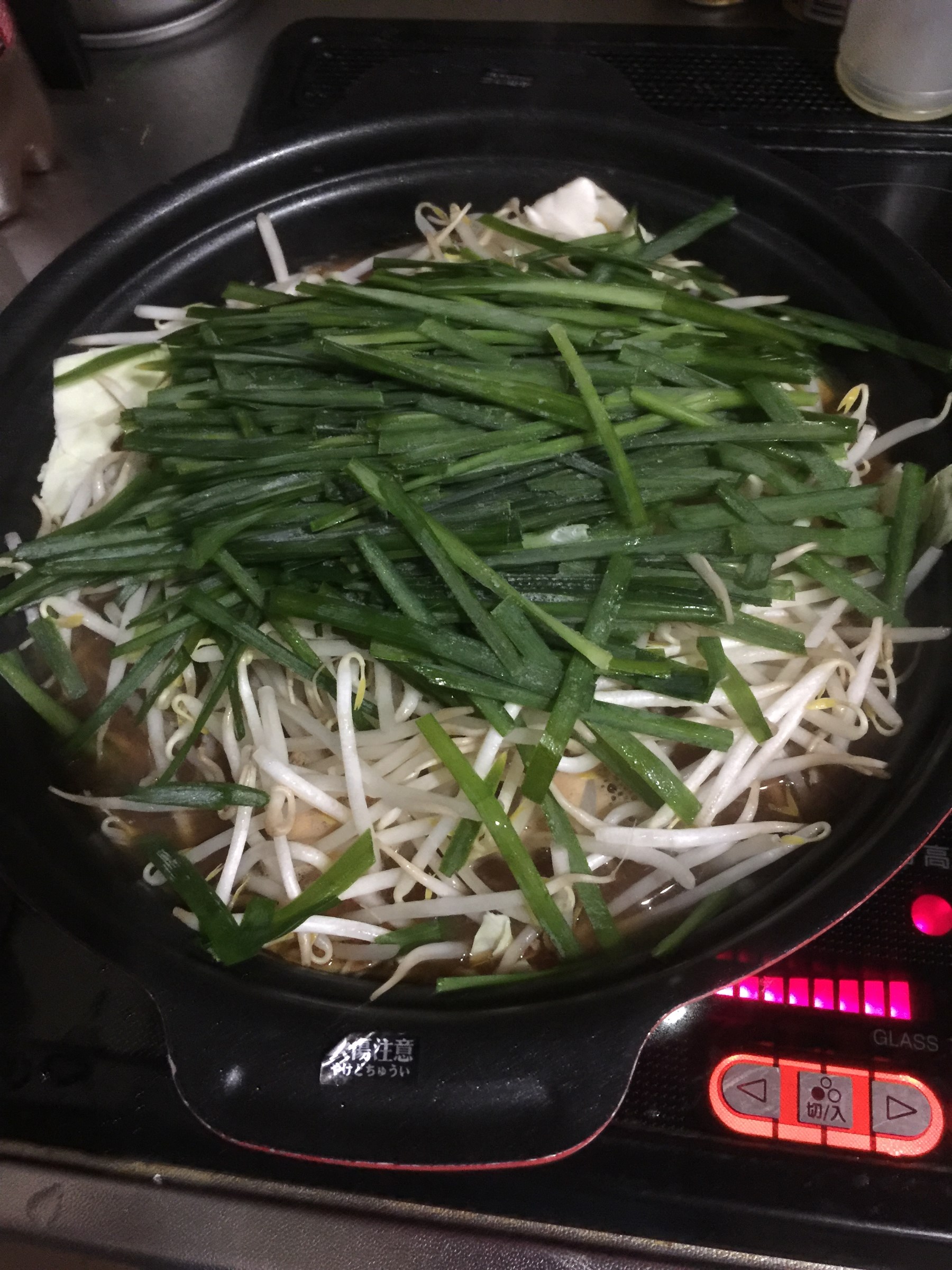 キャベツ・もやし・にら・湯がいたモツを適当に投入っ!