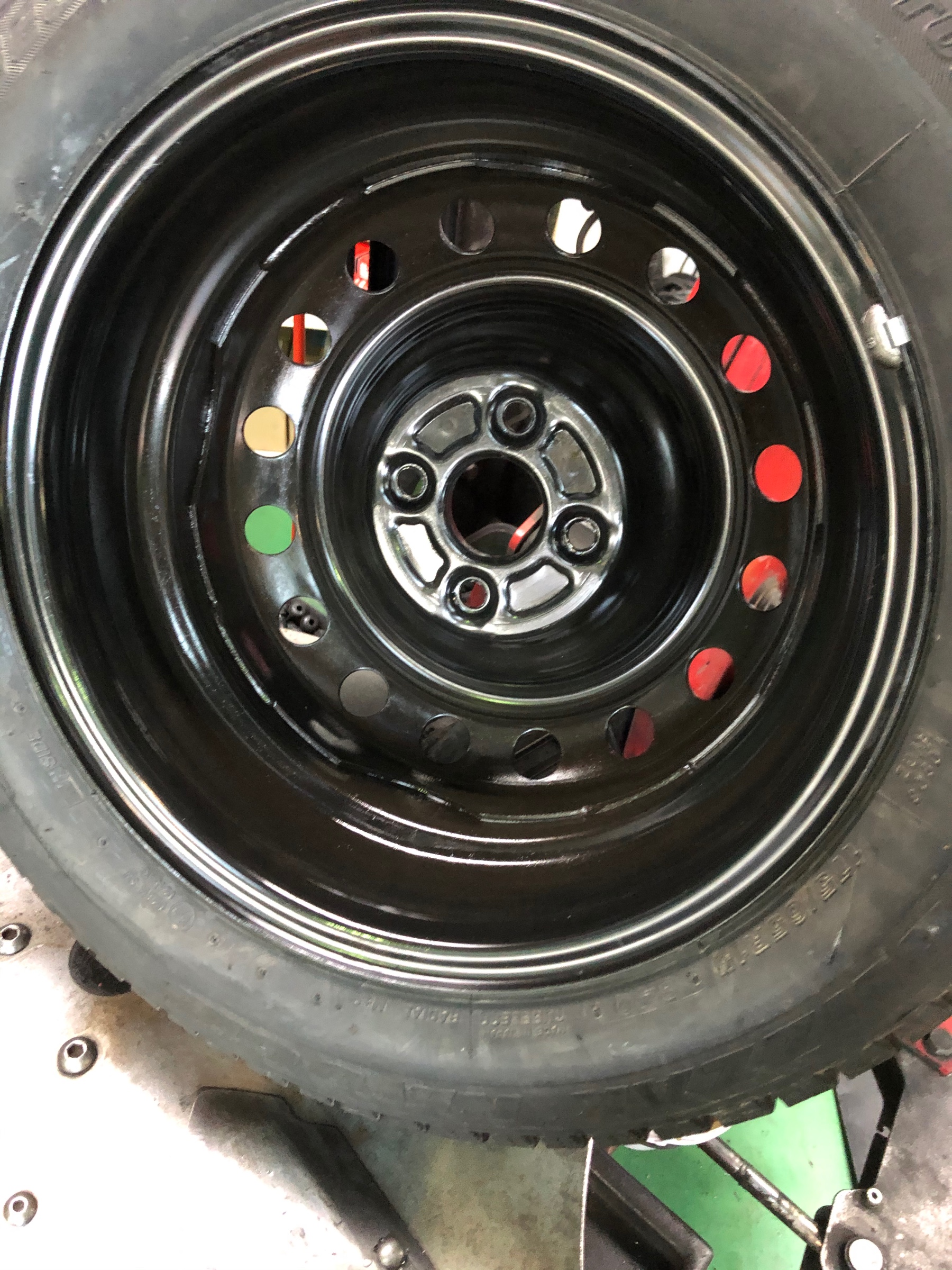 1枚目の写真が、なんも施工されてない純正の鉄ホイール。