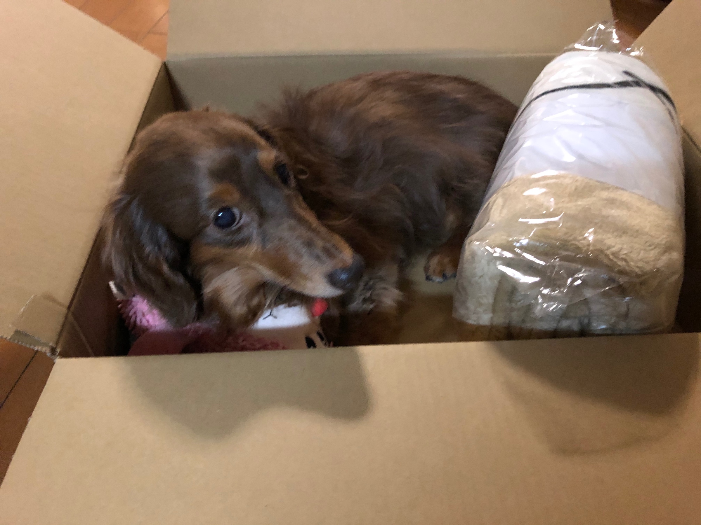 我家の引きこもりワンコがはいっていました。。