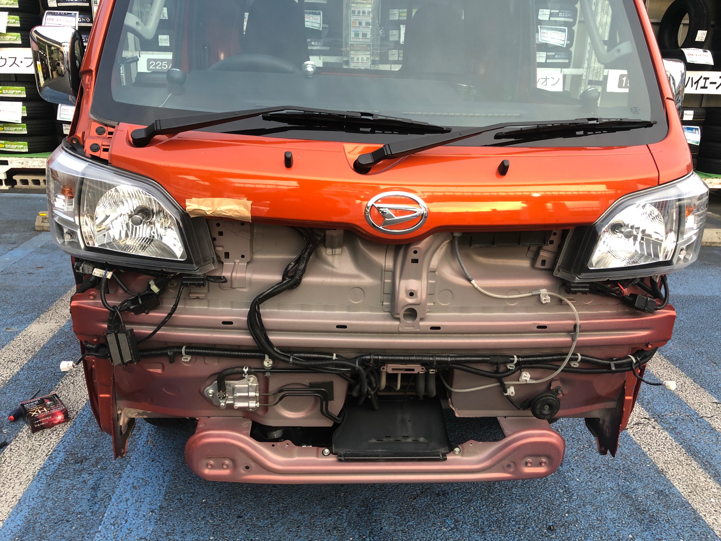 バンパー、ヘッドライト取り外しです。