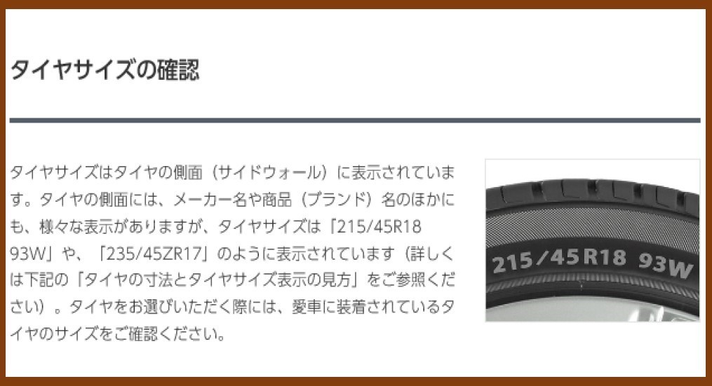 画像のように例えば、235/45R18 93W などと記載されておりますので、
