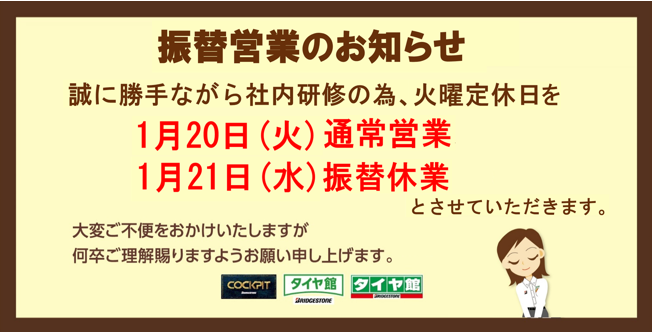 令和8年1月~令和8年2月車検満了のお客様。タイヤ館福島に、車検もお任せ下さい。代車も無料でご用意してます。