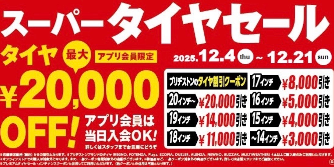 期間限定!!『タイヤスペシャルプライスデー』開催!!