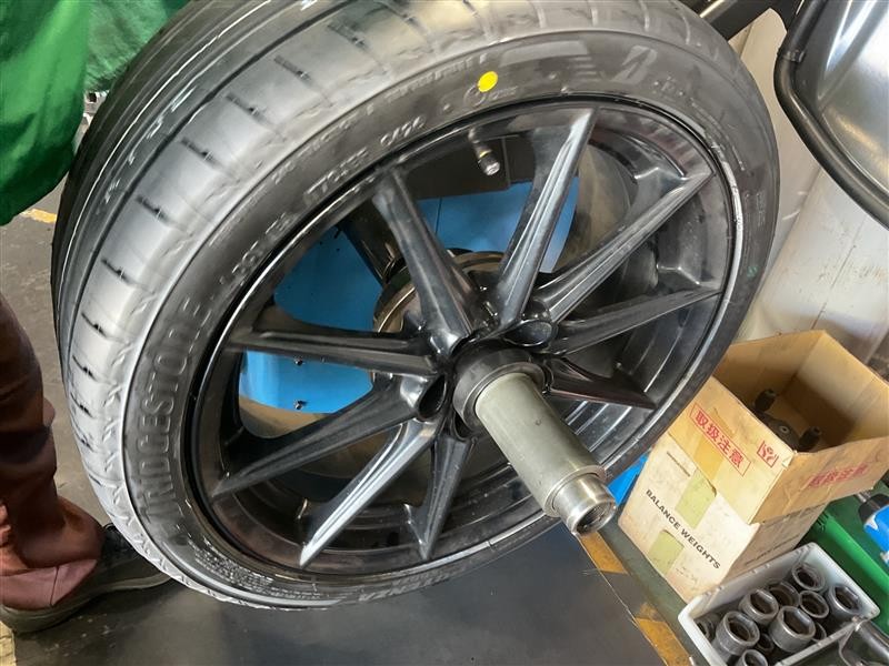 タイヤ交換後はホイールバランスを取ります。