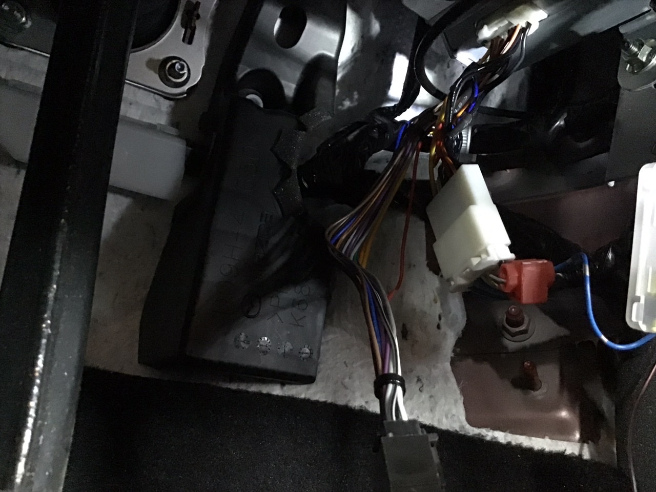 それをシート下まで配線を伸ばし本体に取り付けます。