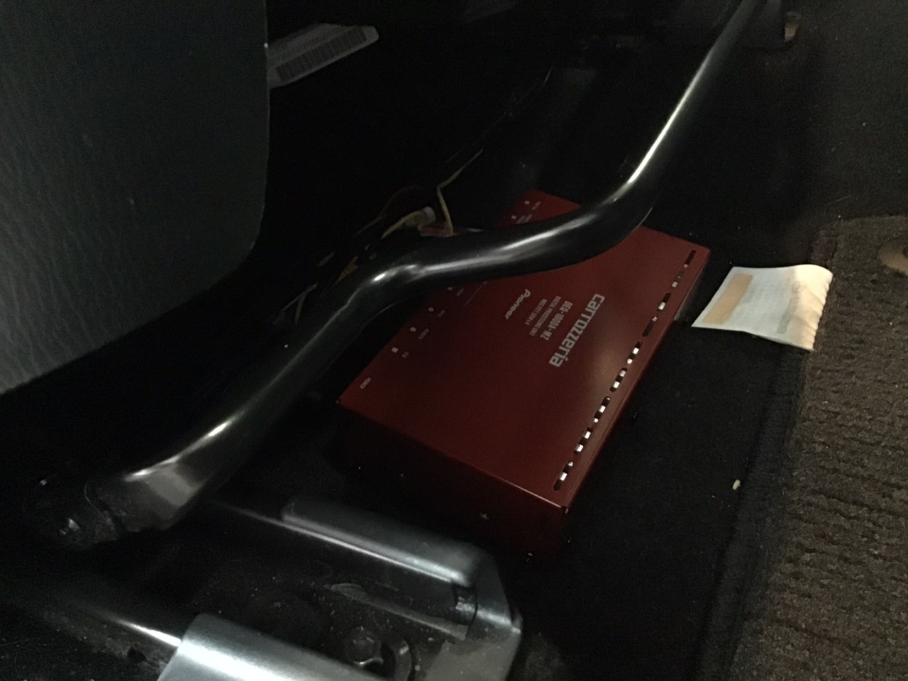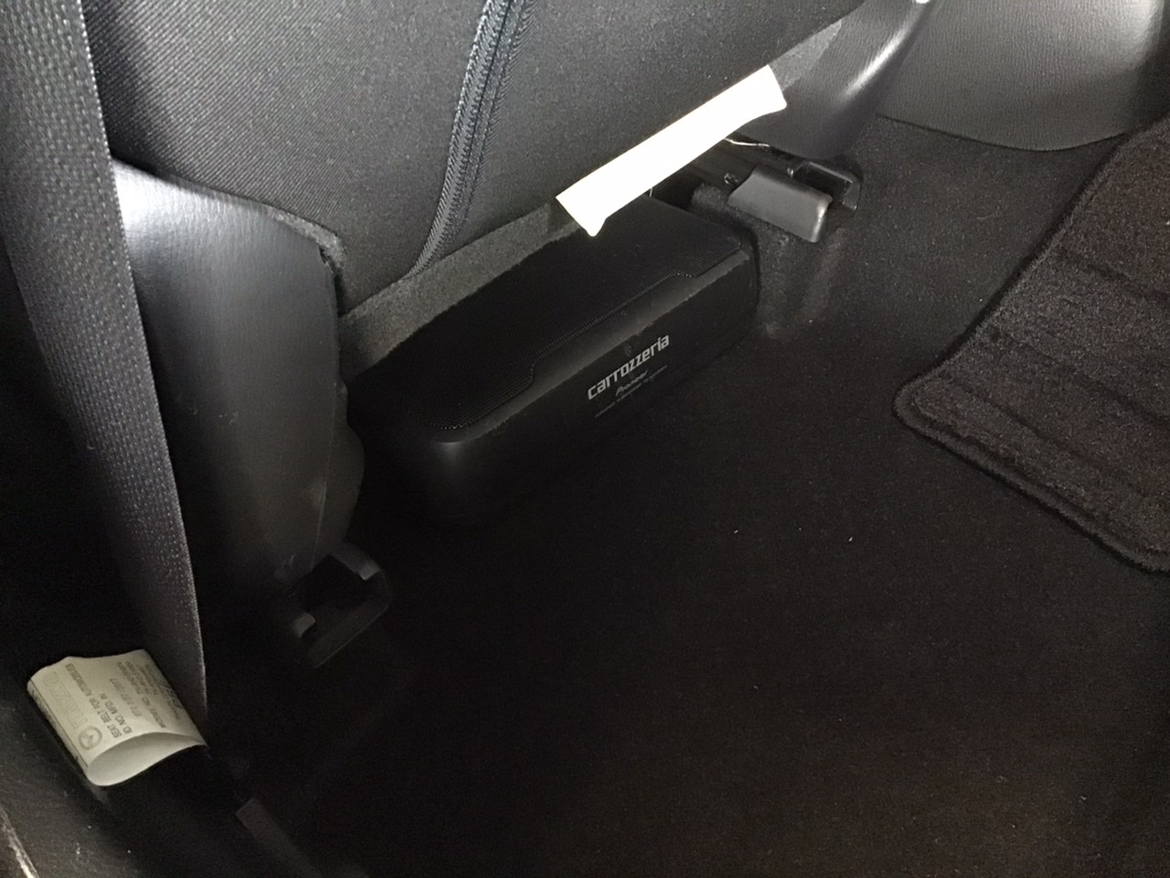 ウーハーは、助手席側シート下に綺麗に収納しました。