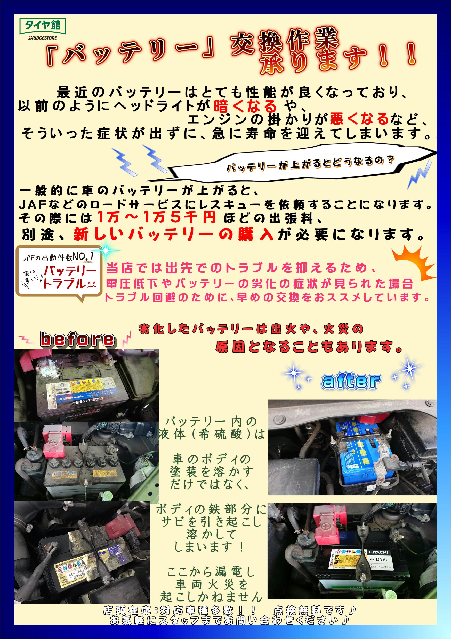 タイヤ館ではタイヤだけでなくバッテリー交換もおこなっています!!