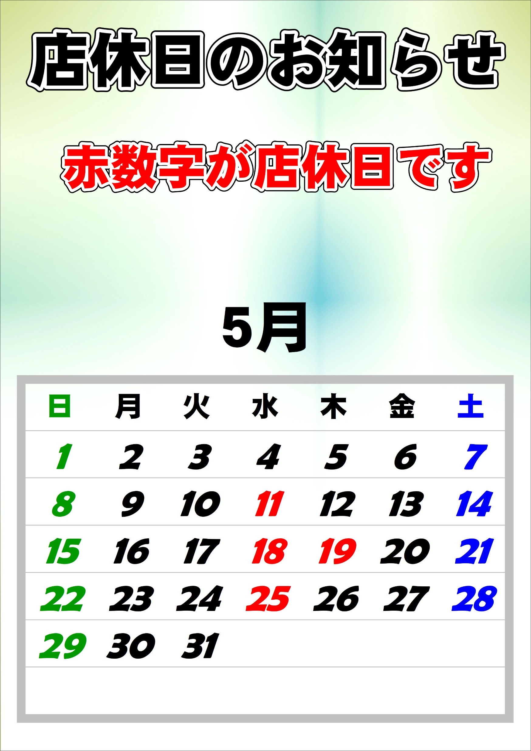 定休日のお知らせです。