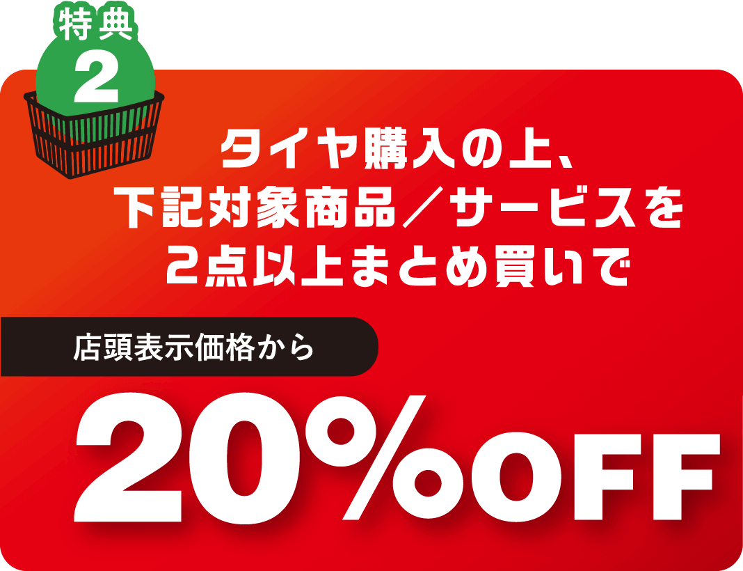 タイヤ購入の上、下記対象商品/サービスを2点以上まとめ買いで