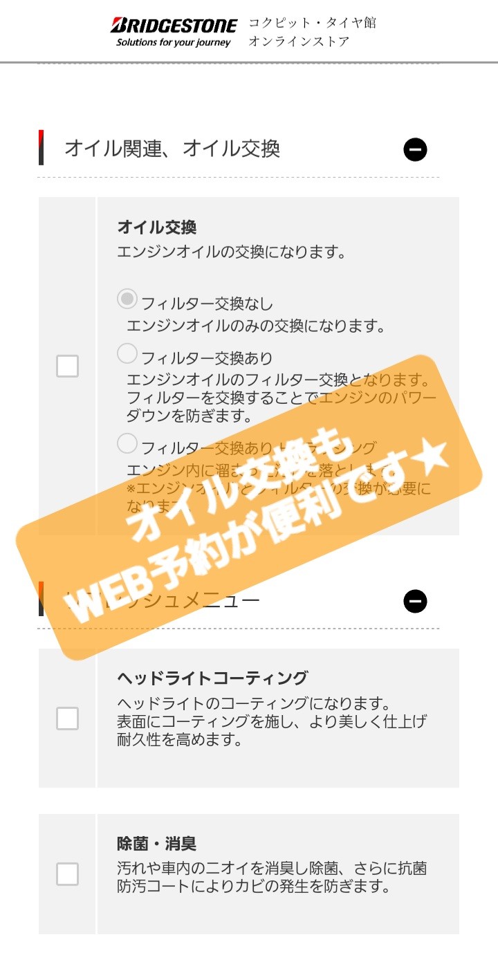 タイヤ点検・安全点検/タイヤ履き替え/オイル交換/その他ピット作業の予約