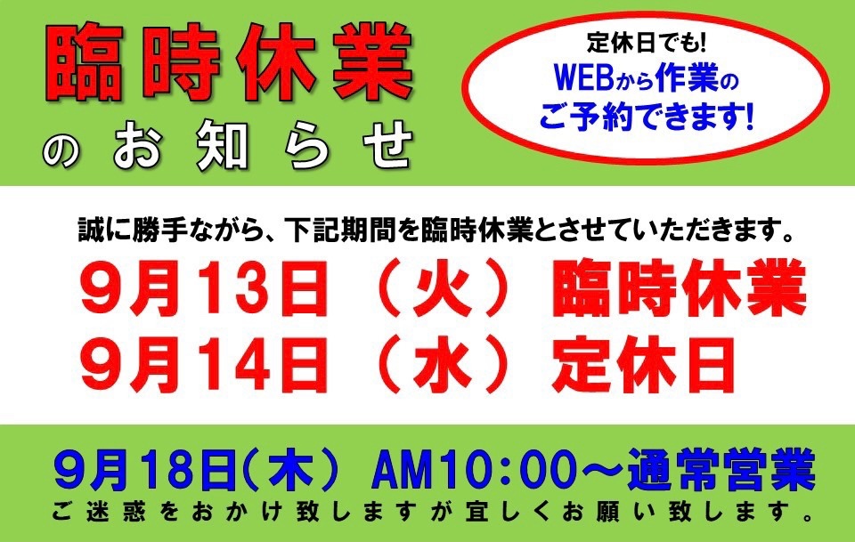 13日14日を臨時休業とさせていただきます。