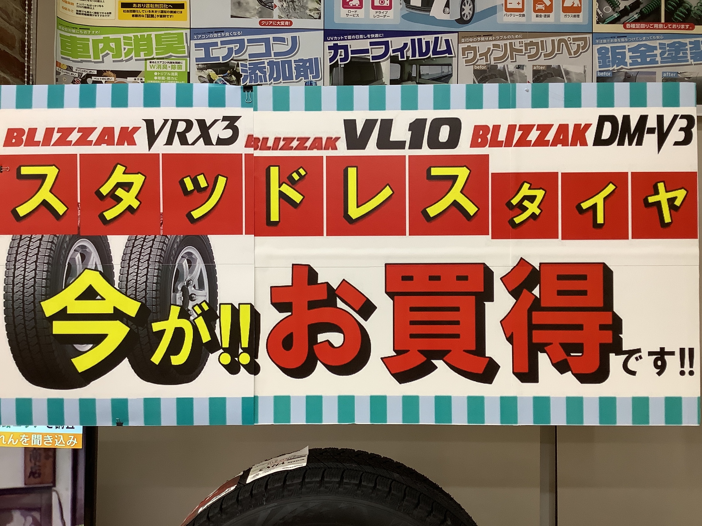 只今、タイヤ館外環伏見ではスタッドレスがお得です。