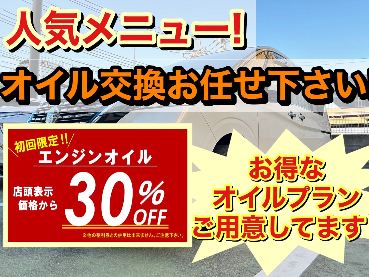 【初回限定!】でオイル交換のお客様は