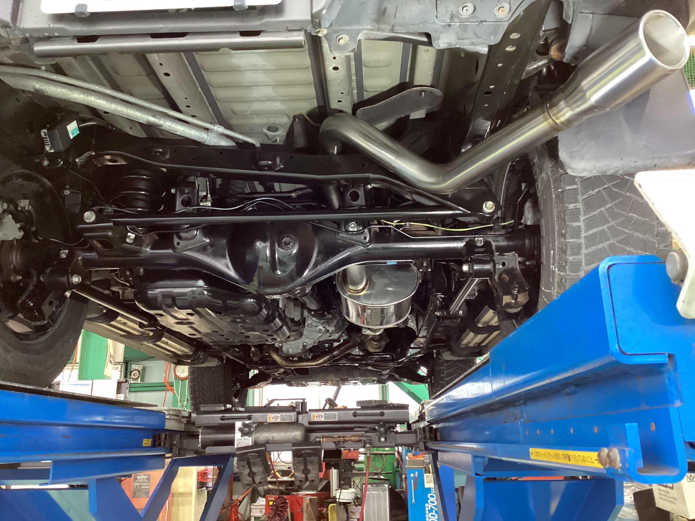 最後に、大事な防錆コーティングを下回り、マフラー含め施工致しました。