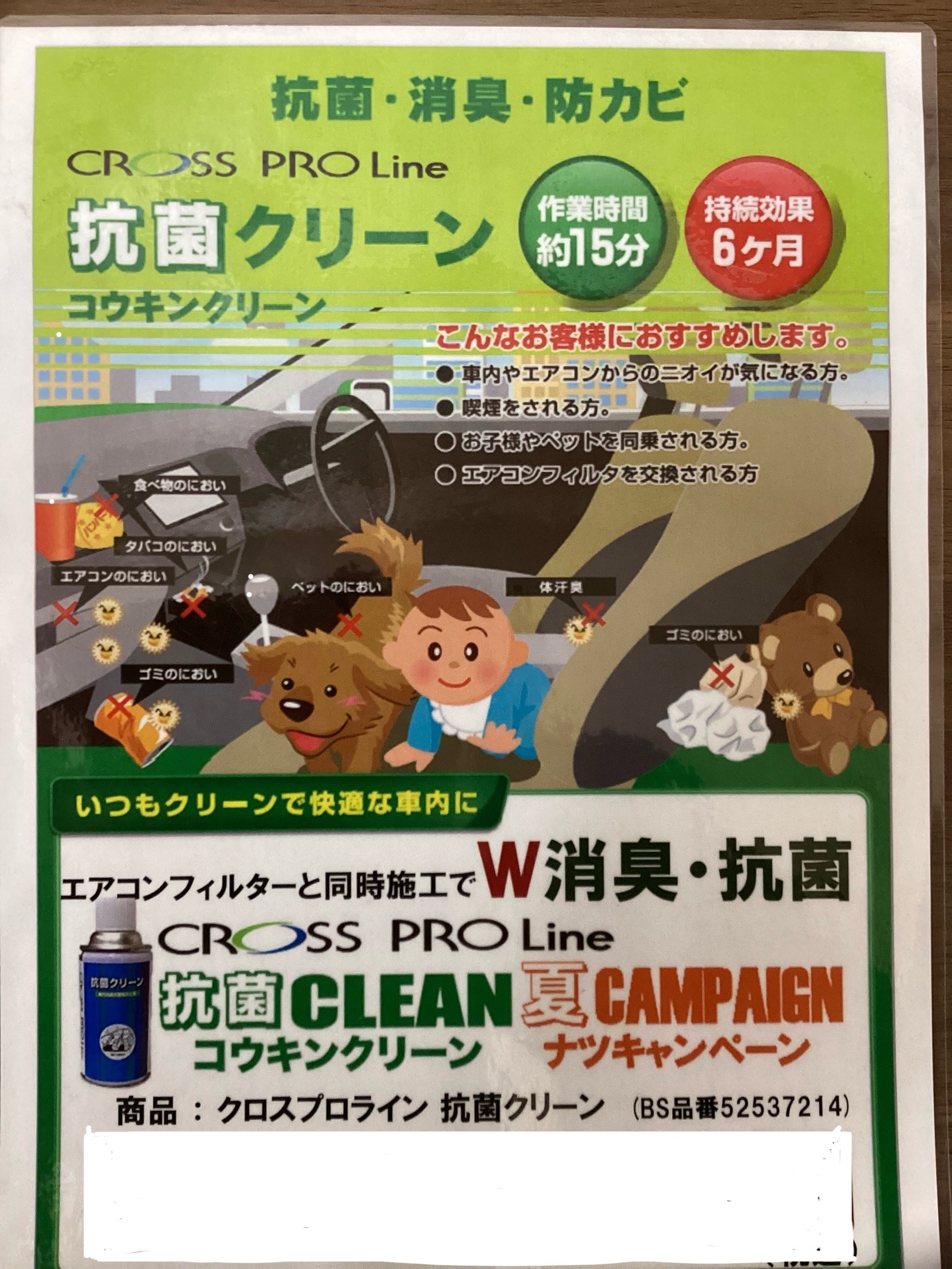 本日は、いつもご利用頂いているお客様のお車に抗菌クリーンの作業をさせて頂きました。