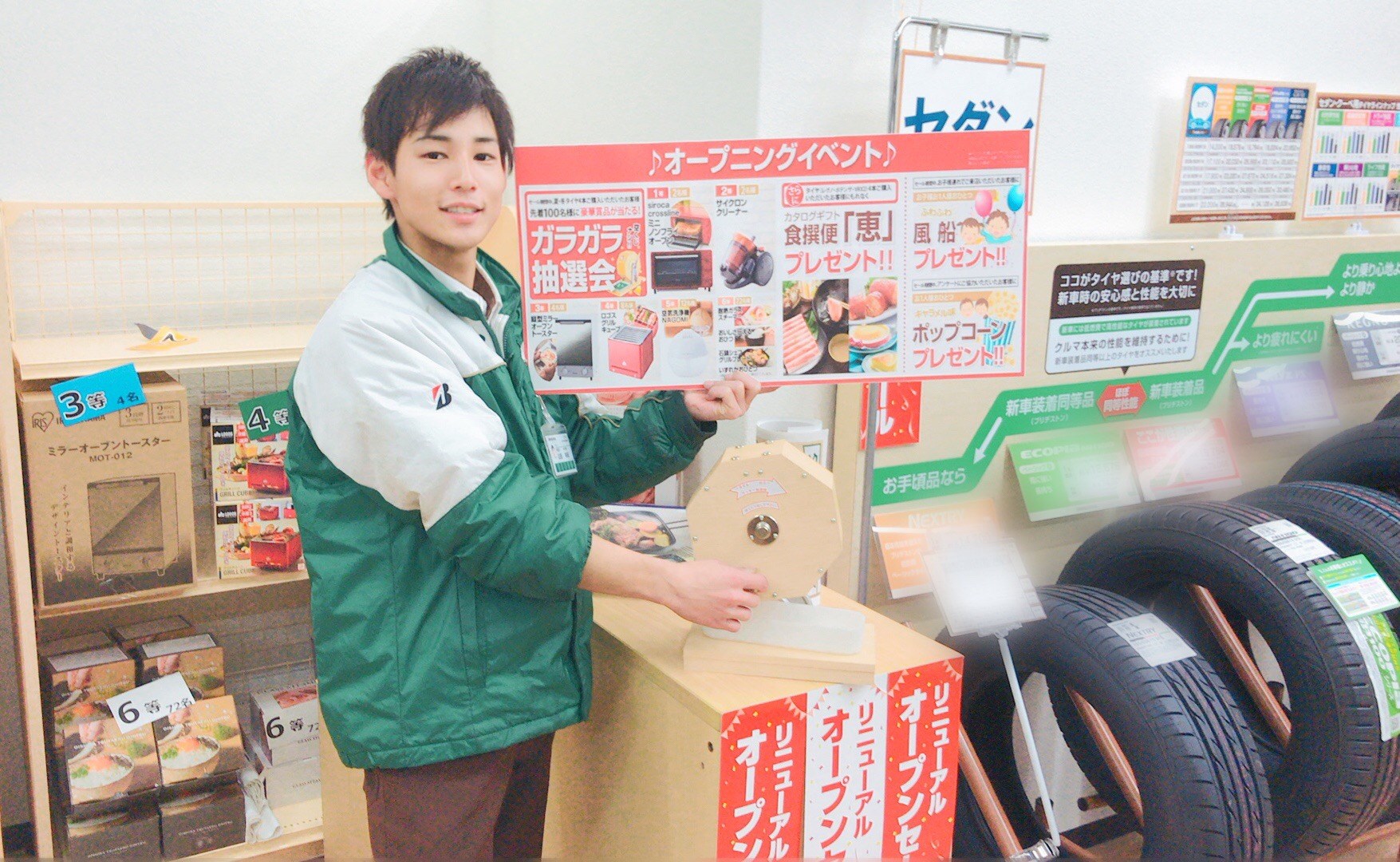 ガラガラ抽選♪ ポスト 2018年3月25日 皆さんこんにちは! ヤマダです(。・ω・)ノ゙ ♪ リニューアルオープンセール期間中 タイヤ4本お買い上げのお客様には 必ず当たるガラガラ抽選会も開催中ですO(≧▽≦)O ♪ 一等、二等もまだございます! たくさんのご来店をお待ちしております(っ´∀`)っ 担当:ヤマダ
