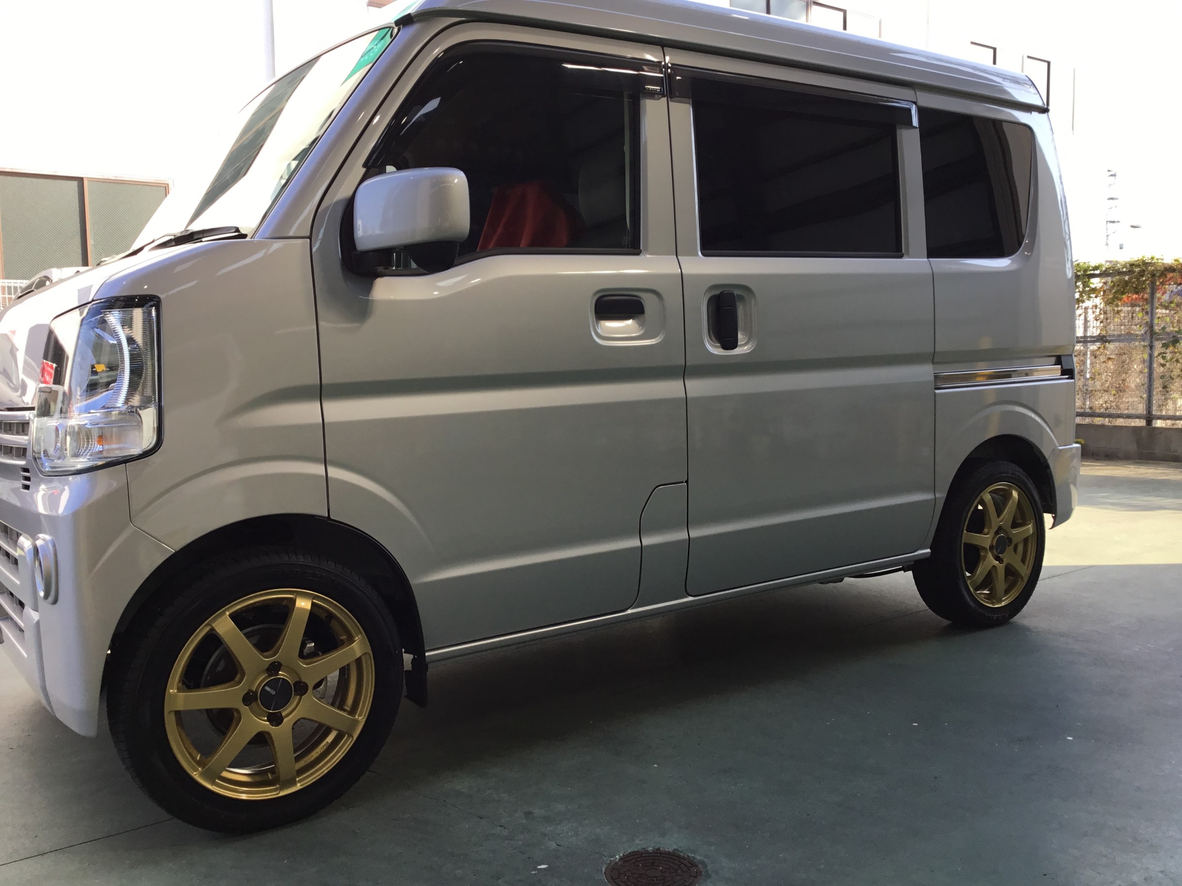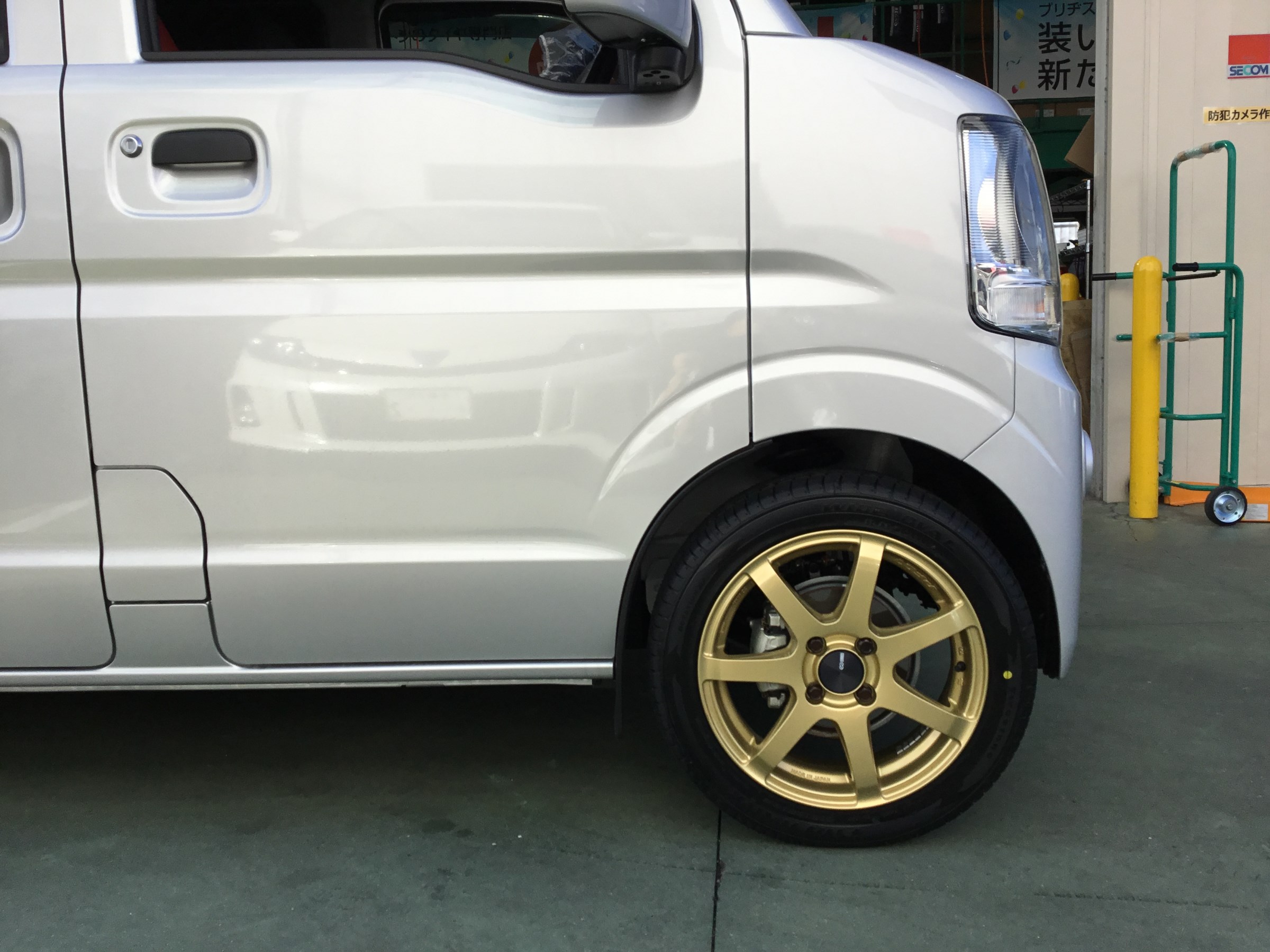 今回、新車のエブリイのお車にインチアップしてホイールセットを装着いたしました!!