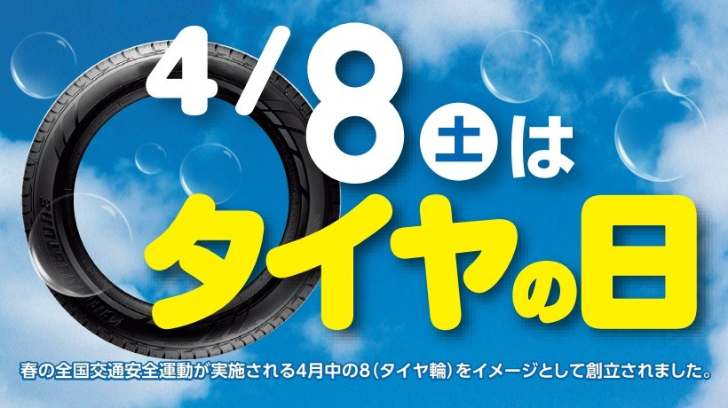 4月8日は『タイヤの日』。4/1~13「タイヤの日 無料安全点検キャンペーン」