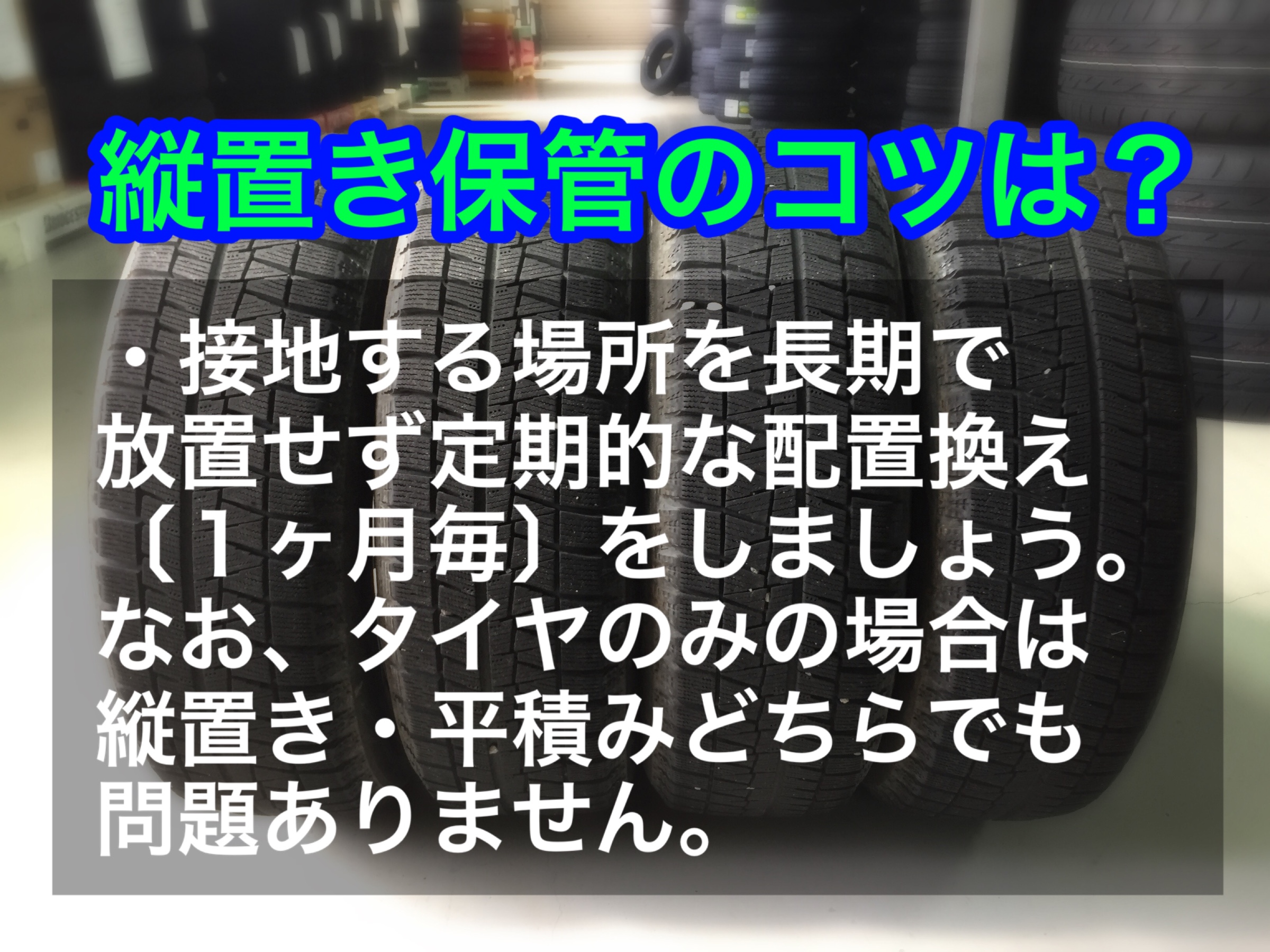 縦置き・平積み共に、タイヤを保管する方法で下記の内容を守っていただきたいこと