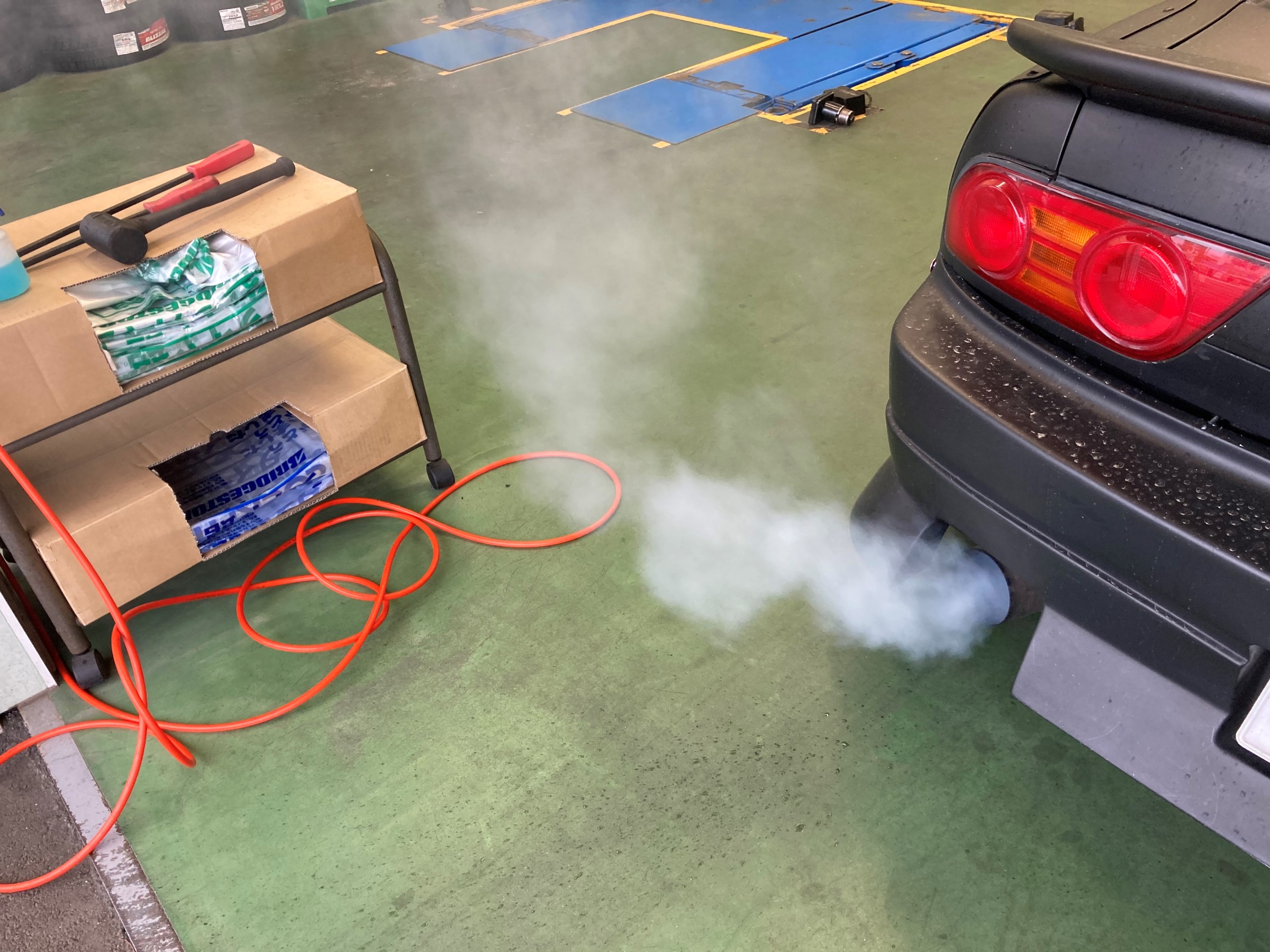 作業の仕上げはマフラーから白煙が出なくなるまで、徐々に回転数を上げながら空吹かしすれば施工完了です!(^^)/