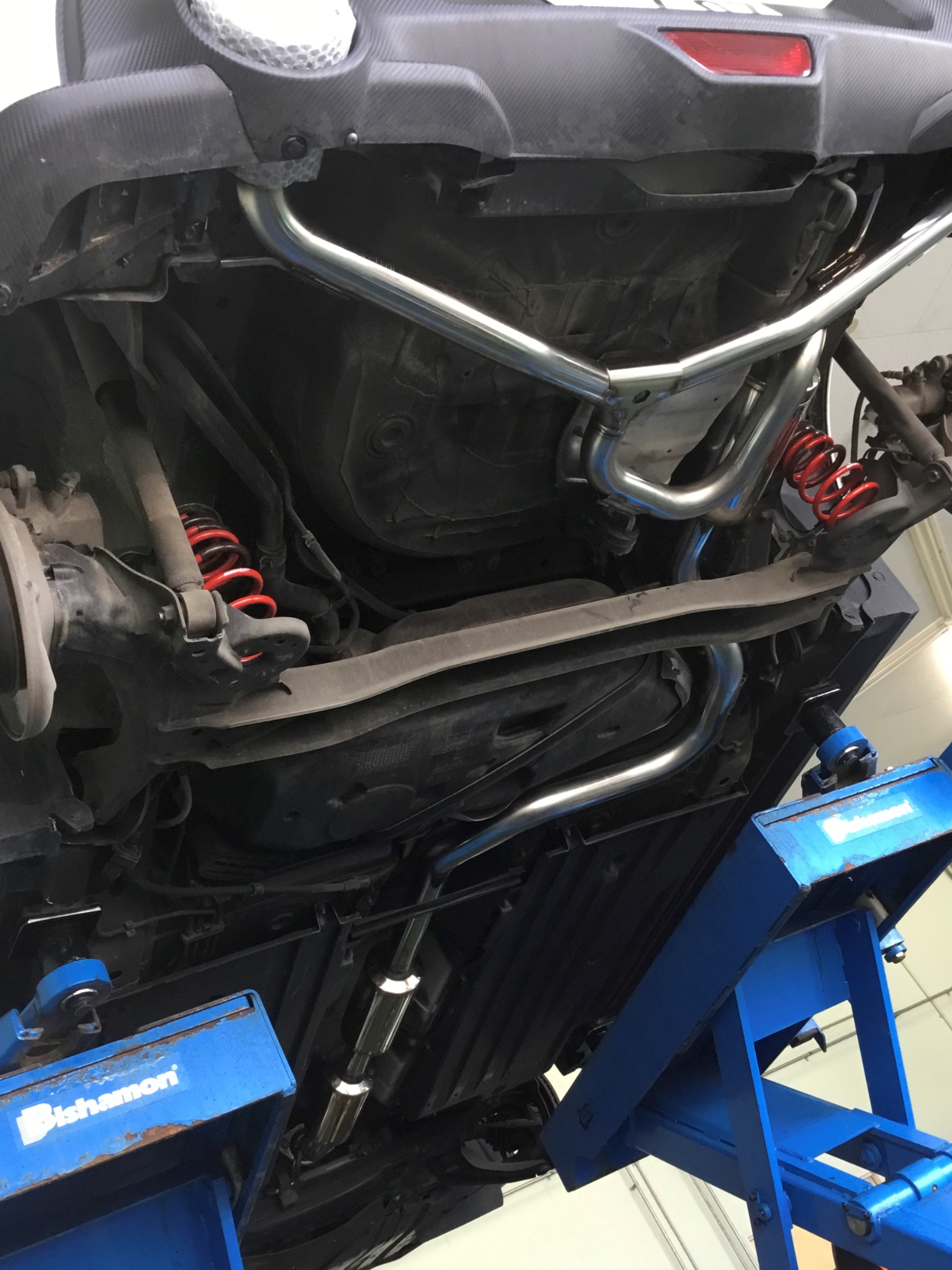 本日は、スズキ・スイフトスポーツ(ZC33S)のマフラー交換とダウンサス取付作業を行います~(^^)/
