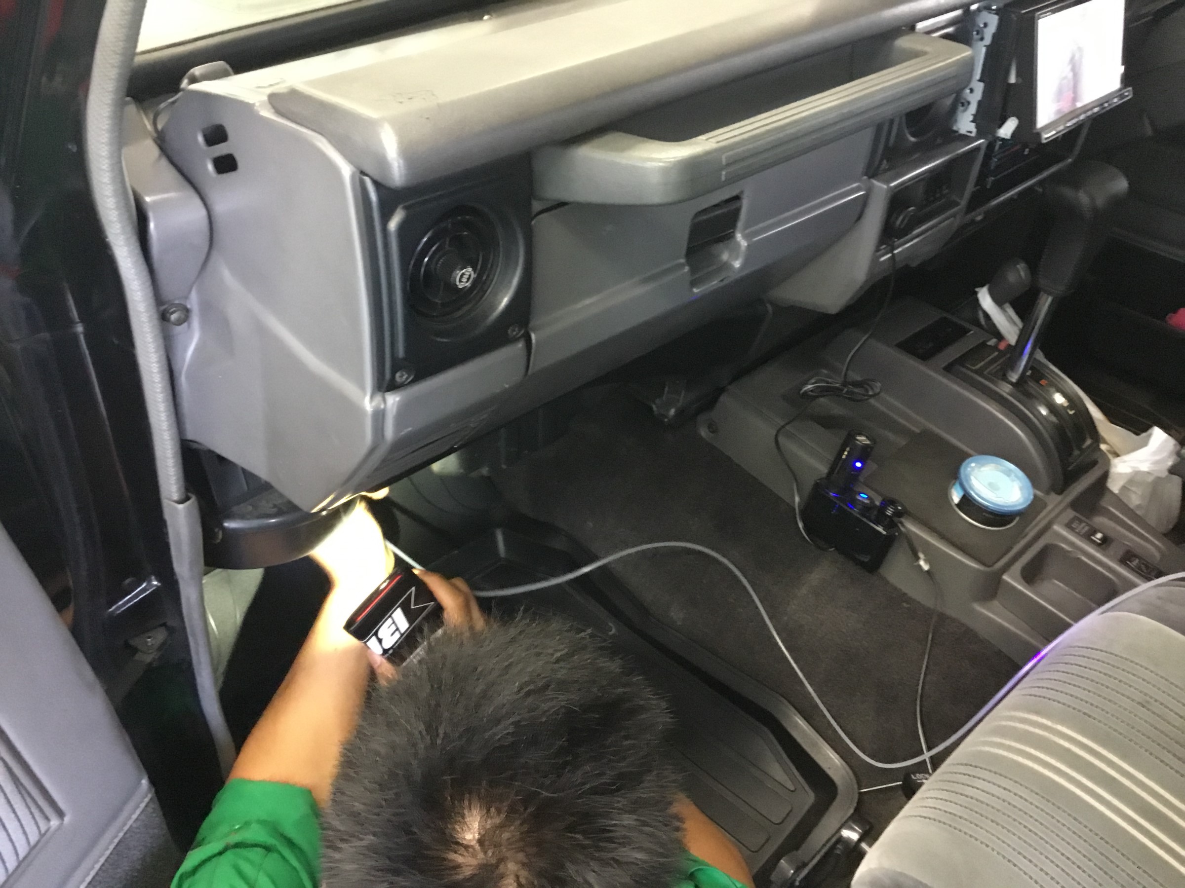 今回施工した78プラドはエアコンフィルターレスの為、ブロアモーター側からエバポレーターの方へ、ホースを取り付けて抗菌クリーンを送りました~(*^^)v